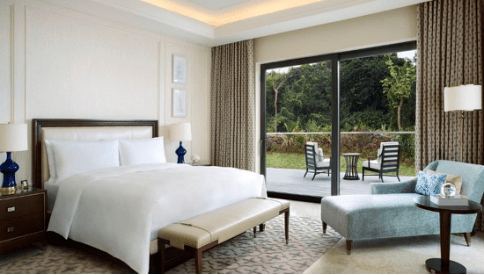 萬豪集團旗下經典奢華品牌麗思卡爾頓酒店在國內首座高爾夫度假酒店—海口麗思卡爾頓酒店別墅客房為您華麗開啟“高球與度假相融合的奢華體驗新風尚”。這16棟別墅建造在火山噴發形成的熔巖石漠之上,毗鄰壯闊迷人的黑石球場,被赫赫有名的觀瀾湖高爾夫球會環繞,眺望而去是一幅由嶙峋的巖層地貌、繁茂的熱帶叢林植被、廣袤的湖泊及大片濕地構成的令人莞爾的奇觀美景圖,為高球愛好者及旅行者提供遠離喧囂的富有個性化的度假方式及體驗,詮釋奢華旅行新風尚。