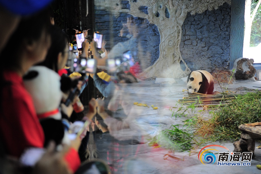 11月25日,“改革開放看海南”2018年全國融媒體海南行采訪團一行,來到海南熱帶野生動植物園參觀熊貓。南海網記者 沙曉峰 攝