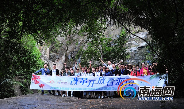 “改革開放看海南”2018年全國融媒體海南行采訪團在霸王嶺國家森林公園合影留念。南海網記者沙曉峰攝