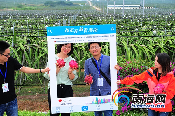 11月29日,“改革開(kāi)放看海南”2018全國(guó)融媒體海南行大型活動(dòng)采訪團(tuán)來(lái)到海南北緯18度果業(yè)有限公司的火龍果基地,近距離探訪東方的“紅火”產(chǎn)業(yè)。南海網(wǎng)記者沙曉峰 攝