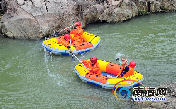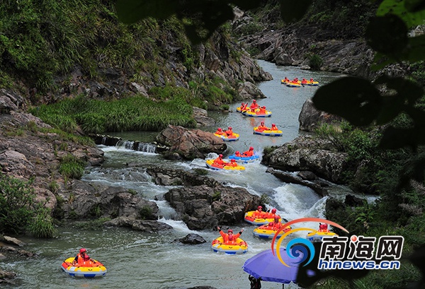 “改革開放看海南”2018年全國融媒體海南行大型采訪團在五指山市紅峽谷體驗漂流。南海網記者沙曉峰攝