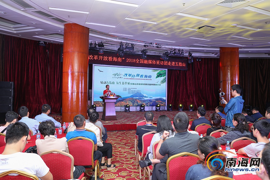 五指山紅峽谷副總經理林道偉推介漂流季活動。南海網記者李昊 攝