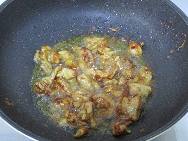 7.最后再把炸好的雞肉回鍋,煸炒片刻后熄火出鍋
