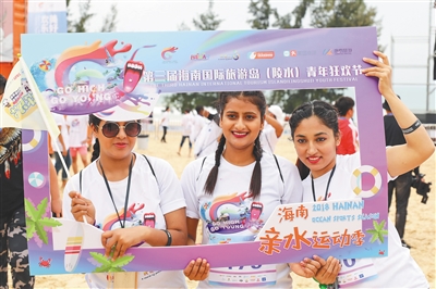 2018年11月25日,2018年第三屆海南國際旅游島(陵水)青年狂歡節在陵水清水灣開幕,圖為游客在合影。 本報記者 武威 通訊員 胡陽 攝