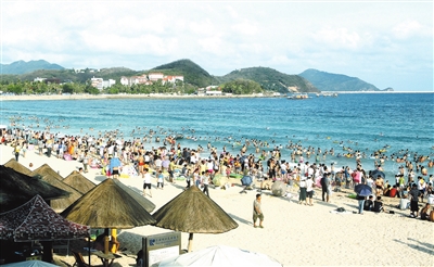 風(fēng)光旖旎的三亞大東海游人如織。(資料圖)