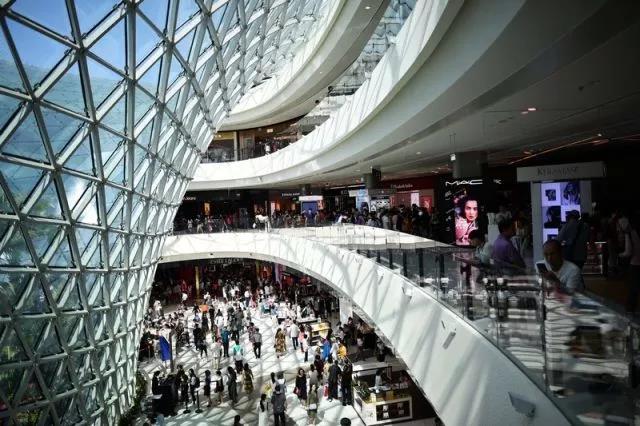 ↑顧客在海南三亞海棠灣免稅店內(nèi)游覽、購物(2月18日攝)。新華社記者 郭程 攝