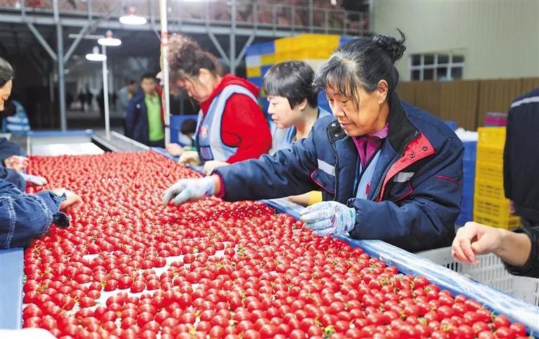 ↑在陵水一農產品初加工集配產業園,工人們在圣女果智能消毒殺菌、分選分級及稱重包裝生產線旁忙碌。記者 武威 通訊員 陳思國 攝