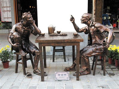 ?雕塑家程連仲的作品《老爸茶》。