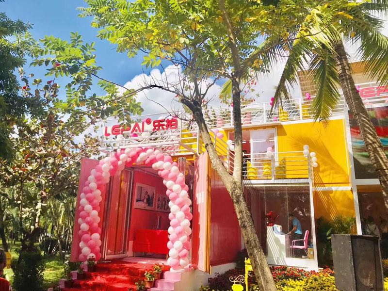 據(jù)介紹,位于天涯海角游覽區(qū)景觀大道旁的樂拍攝影集裝箱創(chuàng)意空間,既是門店,也是風(fēng)景。門店一樓為接待中心和化妝區(qū),二樓為服裝區(qū),三樓是創(chuàng)意休閑區(qū)和辦公區(qū),樓頂為“天空之鏡”網(wǎng)紅打卡點。建筑整體以粉色為主色調(diào),采用目前最潮的網(wǎng)紅店設(shè)計理念,裝修風(fēng)格時尚,配套齊全,為景區(qū)新增一處時尚靚麗的風(fēng)景。