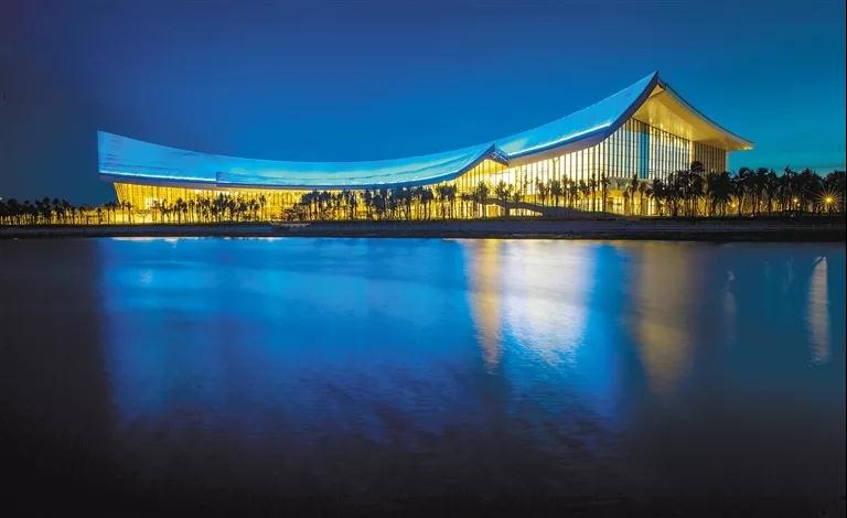?↑夜色下的中國(海南)南海博物館。宋國強 攝