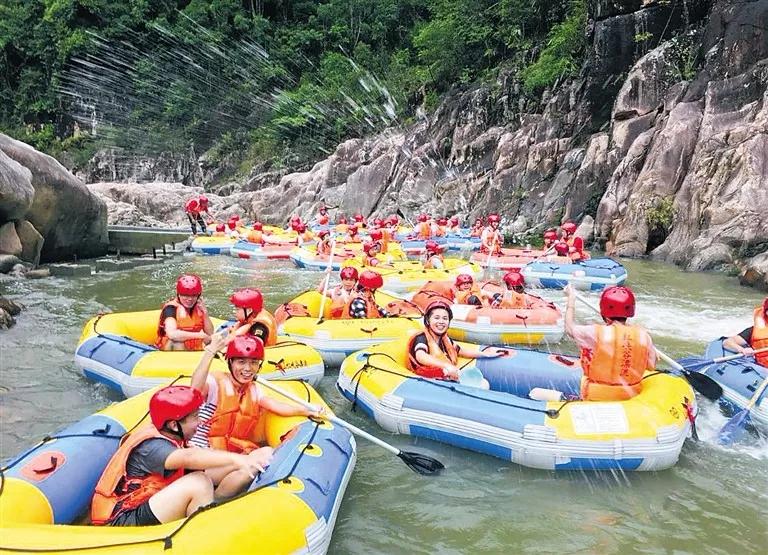 ↑10月5日,五指山紅峽谷漂流景區,游客體驗山地漂流。海南日報記者 武威 通訊員 劉培遠 攝