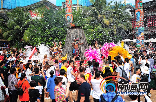 1月29日中午,三亞千古情景區(qū)漫天“飛雪”,吸引了眾多的中外游客身著夏裝在“雪”中嬉戲。 南海網記者 沙曉峰 攝