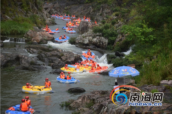 ?春節黃金周期間,游客在五指山體驗漂流。景區供圖
