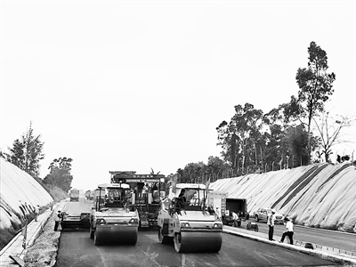 “你看,文瓊高速路面二標(biāo)施工都是我們修的,作為央企,我們采用的施工技術(shù)與設(shè)備跟港珠澳大橋路面施工設(shè)備一樣,也是用中大攤鋪機(jī),都是一流的。”正在現(xiàn)場(chǎng)負(fù)責(zé)施工技術(shù)指導(dǎo)項(xiàng)目總工的王洪偉,指著眼前一路上鋪設(shè)的路基自豪地對(duì)記者說(shuō),參與文瓊高速路面二標(biāo)項(xiàng)目部建設(shè)的一共有170多人,大部分來(lái)自遼寧、黑龍江、吉林等,今年春節(jié),除了大年三十和初一休息兩天外,項(xiàng)目部所有人員從春節(jié)前一直在工地上干到現(xiàn)在。目前,該標(biāo)段共30.25公里,基層路面施工已完成總工程量的80%。