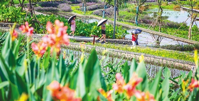美舍河鳳翔濕地公園綠意盎然。 本報記者 張茂 攝
