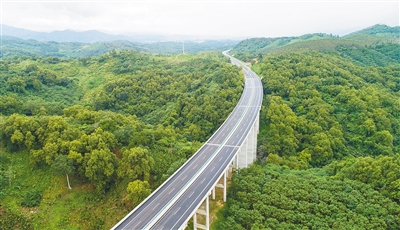 從一片“綠色”中穿過(guò)的中線(xiàn)高速。 海南日?qǐng)?bào)記者 張杰 通訊員 張璐 攝
