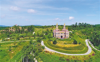中線(xiàn)高速海屯路段邊上的夢(mèng)幻香山芳香文化園。 海南日?qǐng)?bào)記者 張茂 攝