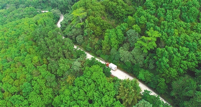 從一片“綠色”中穿過的中線高速。 海南日報記者 張杰 通訊員 張璐 攝
