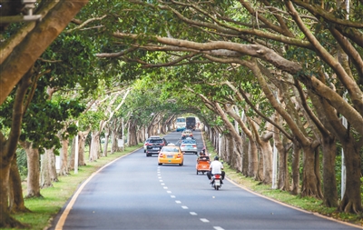 《非誠勿擾Ⅱ》里有一個男女主角開車經過亞龍灣路的畫面,多年過去,這個畫面仍然讓人難以忘懷。道路兩旁茵茵如蓋,樹枝錯落有致,驅車行駛在其中,一種賞心悅目的感覺油然而生。