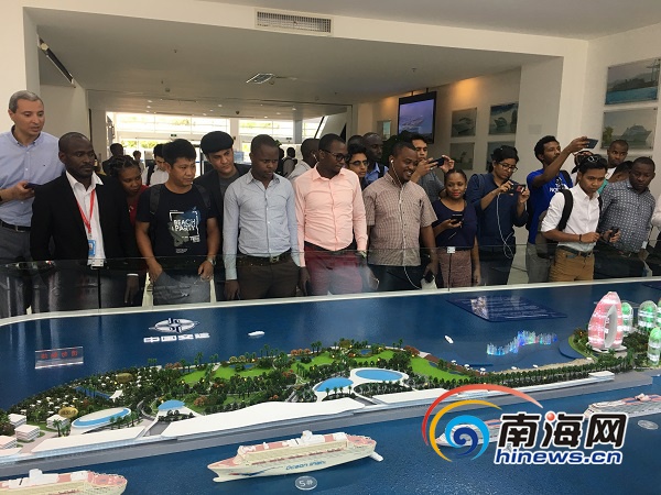 亞非49國主流媒體團在三亞鳳凰島國際郵輪碼頭參觀采訪。南海網記者 胥圣蘭 攝