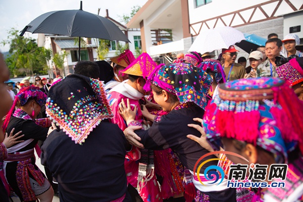 “這是我第一次觀看苗族傳統婚禮,雖然有的環節不是很明白,但看到他們非常開心、快樂,我也感覺特別有意思。”王女士是一名“候鳥”老人,居住在南圣鎮附近的小區,聽說新春村舉行“三月三”節慶活動,她早早地和幾個同伴來到了現場,實際感受了五指山人民的熱情與幸福。