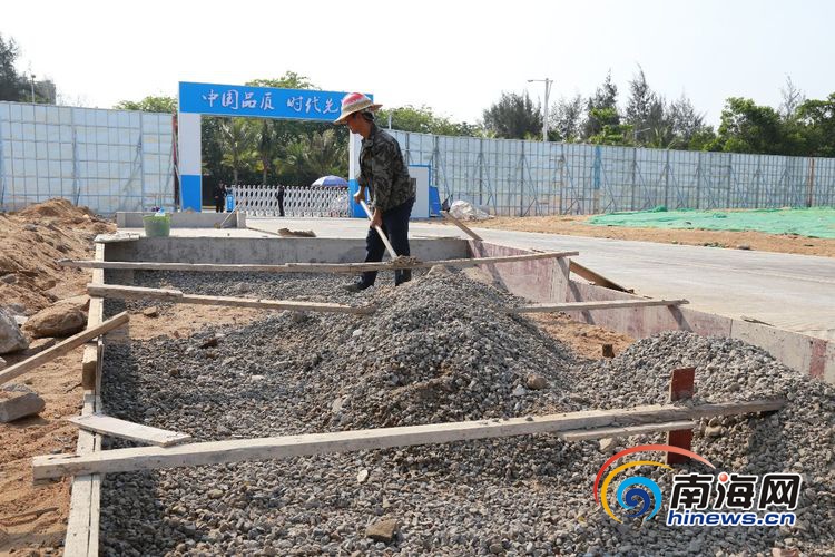 “海口市國際免稅城項目在項目前期工作開展過程中得到了省、市、區政府給予的大力支持,尤其是在屬地西秀鎮政府的幫助下,該項目進展順利。目前,項目施工道路已建成,大院圍擋完成砌筑,臨建辦公區及其配套設施正在火熱建設中。”國旅(海口)投資發展有限公司總經理張京濤說。“為了保障現階段的施工進度,我們投入施工人員98人,挖機6臺、鏟車2臺、壓路機2臺、翻斗車4臺、裝載機6臺。”
