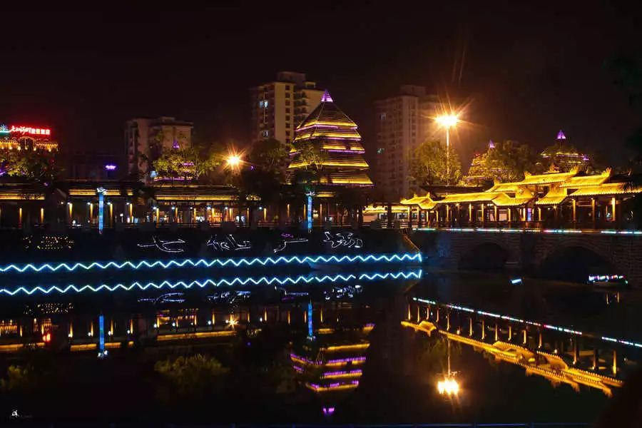 瓊中的夜景,很美!在這么美妙的夜晚,牽著TA的手,走在百花廊橋中,沉浸在曼妙的夜色里……