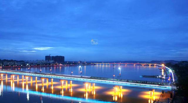 這是陵水夜幕下的陵水河和椰林大橋。椰林大橋很有世紀大橋的風范,在陵水這座小城,是很亮眼的夜景。
