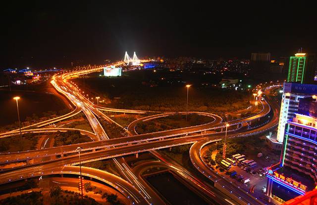 ▲圖為濱海立交橋夜景。黃一冰 攝