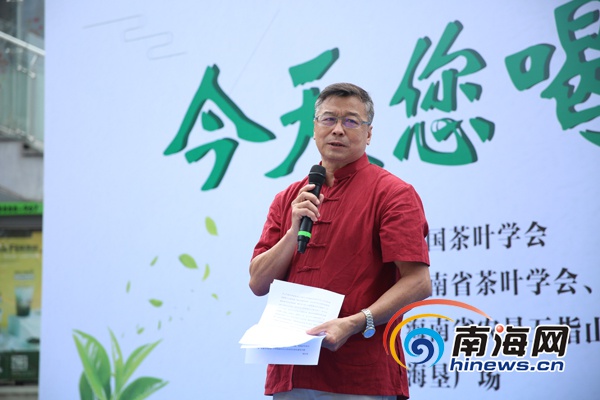海南省茶葉學會會長蔡錦源介紹活動情況。南海網記者 陳麗娜 攝