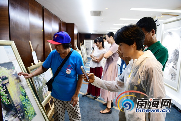 市民在現(xiàn)場參觀名家書畫作品。南海網(wǎng)記者 沙曉峰 攝