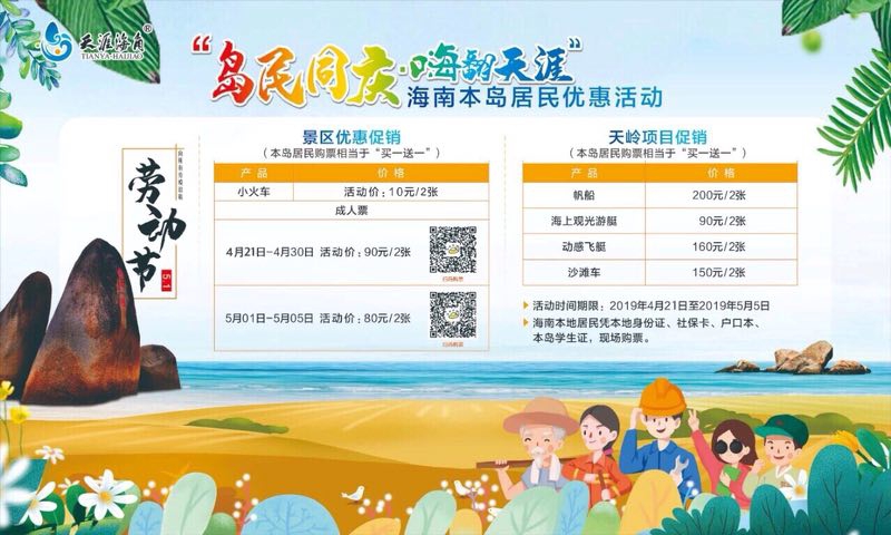 據(jù)介紹,2019年4月21日至5月5日期間,海南省本島居民憑有效證件(海南本地居民身份證、社保卡、本島學(xué)生證),即可在指定平臺享受“買一送一”的購票優(yōu)惠,優(yōu)惠項目包括景區(qū)門票、觀光小火車、帆船、動感飛艇、海上觀光游艇等。特別是,5月1日至5月3日,通過美團(tuán)、同程OTA平臺購買景區(qū)門票還可享秒殺優(yōu)惠,即19.9元/張,每天限15張。好機(jī)會不容錯過,市民游客在“五一”期間用一個人的游玩價格,即可收獲雙人游玩的美好時光!