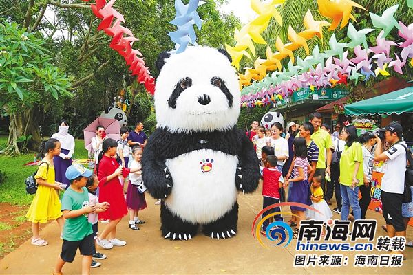 5月2日上午,“五一”小長假的第二天,海口熱帶野生動植物園迎來客流小高峰,園區里可愛的“大熊貓”造型吸引眾多小游客。海南日報記者 張茂 通訊員 熊麗 攝