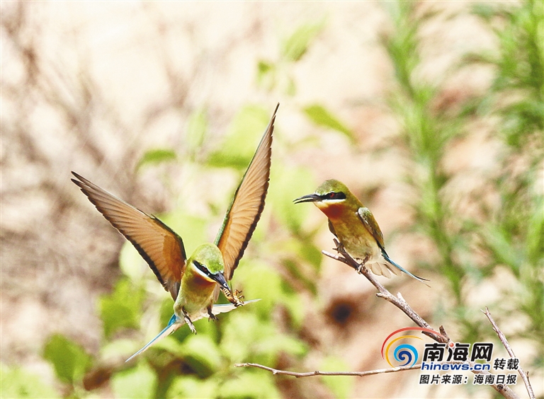 蜂虎羽毛艷麗、色彩斑斕,被譽為“中國最美的小鳥”,每年的4月至7月是蜂虎繁殖的季節。2018年5月,海口五源河下游發現栗喉蜂虎和藍喉蜂虎,引起社會廣泛關注。