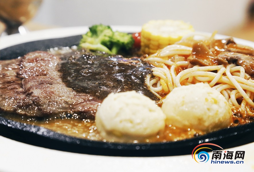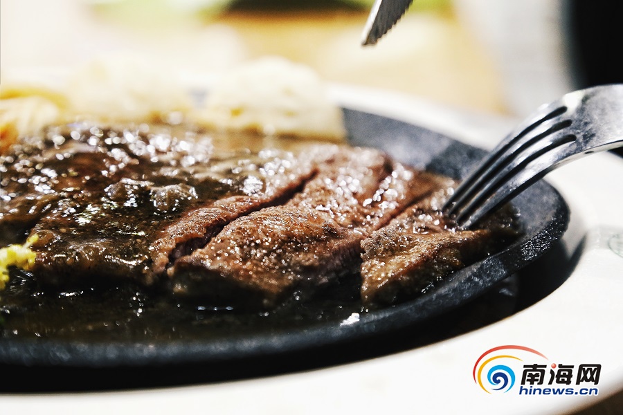 火焰牛排熱氣騰騰又鮮嫩多汁。南海網(wǎng)記者 姚皓 攝