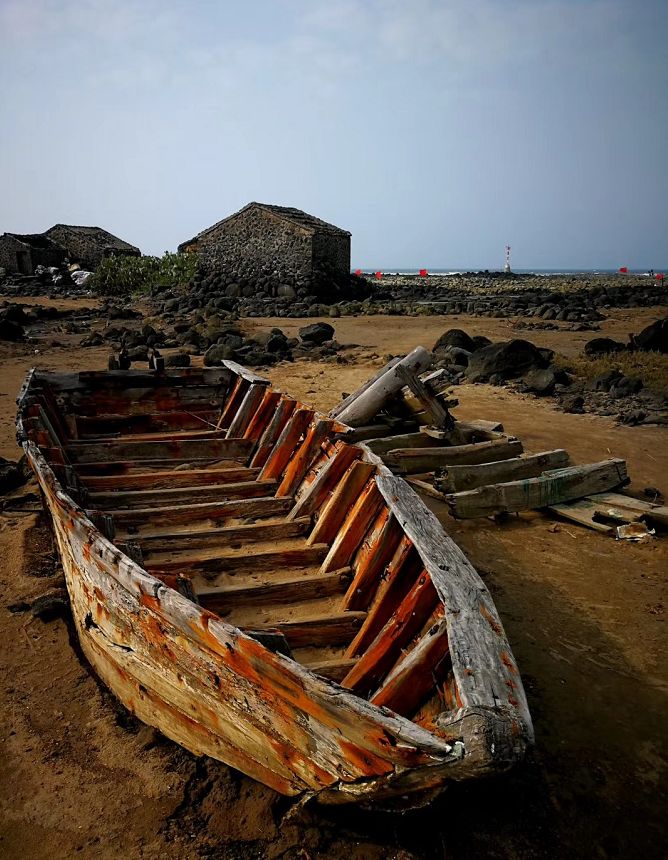 村落的古宅、村路及圍墻,多數是黑石砌筑而成。黑石的村莊緊挨著黑石的鹽田,可謂半村鹽田半村石。開門見大海,出門便是鹽田。星羅棋布的圓形鹽槽,是大海生生不息的胎記,也是村莊永不退色的歷史符號。