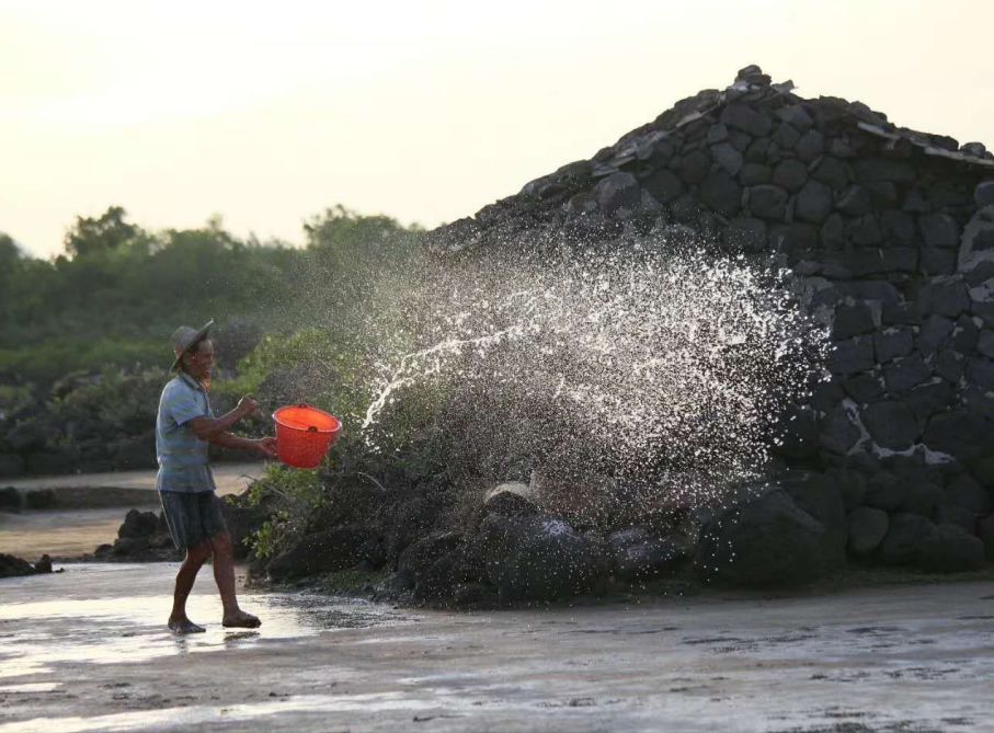 這里的人們性格豪爽耿直,勤勞勇敢,質樸坦誠。火山爆發的裂變與沉靜,大海的寬闊與險惡,給予這里不屈不撓的血統。連長在鹽槽、鹽壇邊和圍堰石縫里的野草,也不懼烈日曬和海水泡,頑強地生長,盡情地開花。