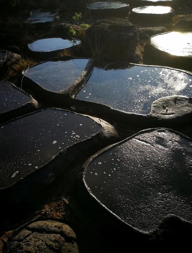 每一個村莊的鹽田各不相同,千姿百態。或依岸而成,或依石而成,或依村而成,自然天成。從古至今,雖各為其田,但又有黑石鹽道互通,三個村莊的鹽田連成了一片亙古不變的生態石花帶。