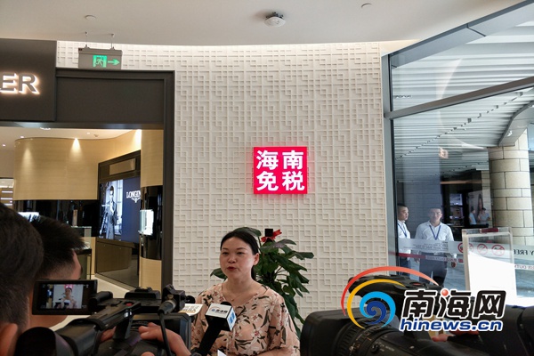 游客在海口日月廣場免稅店購物后談體驗,南海網記者 孫令正 攝