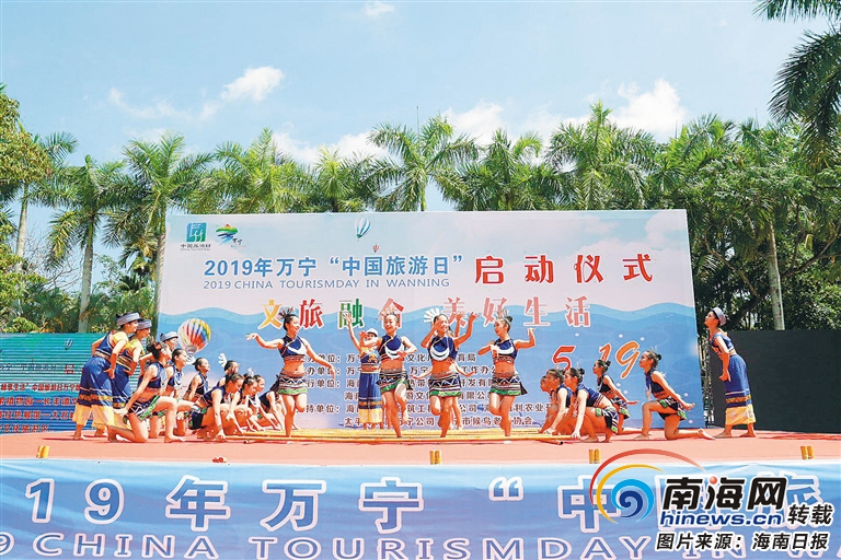 2019年萬寧市“中國旅游日”活動啟動儀式現場的特色歌舞表演。