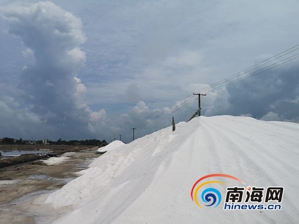鶯歌海鹽場(chǎng)的鹽堆成“銀山”。南海網(wǎng)記者 蘇靚 攝