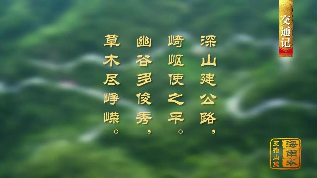這詩句出自《過五指山》,是1957年朱德總司令視察海南島時途徑五指山阿陀嶺所作,其中“深山建公路,崎嶇使之平”指的正是海榆中線的修筑。