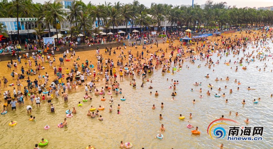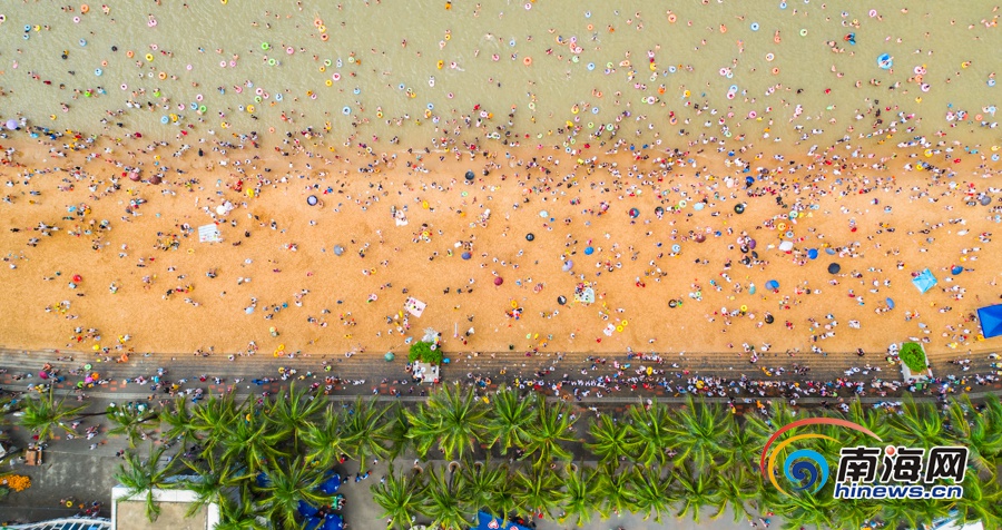空中俯瞰洗龍水的市民。南海網記者 劉洋攝
