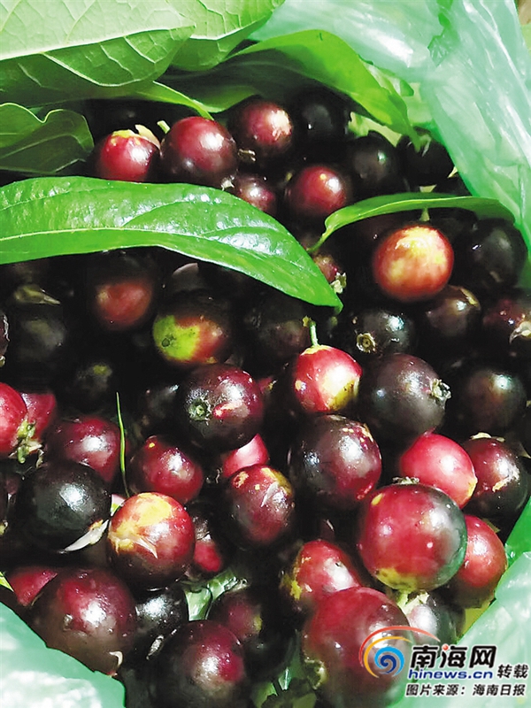 步入陵水黎族自治縣英州鎮走所村,只見特色民房錯落有致,房前屋后花木叢生,一派清幽的田園鄉村場景。行走在新修葺的硬化路面上,忽然地上幾顆紅紫色的小果吸引了我們的注意,抬頭一望,只見滿樹綠葉間,搖曳著成串的小果。