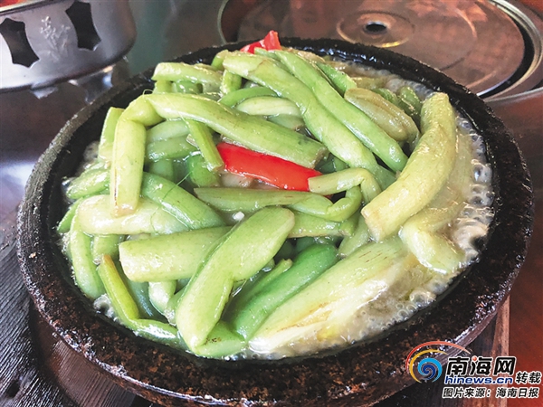 在瓊海市溫泉鎮,有一家以農家小院為用餐場所、以當地特色農家菜為主打菜肴的餐廳十分火爆。“到我們這,一定要品嘗溫泉鵝。另外,還要嘗嘗鐵板鮮芋梗,這是我們的‘網紅菜’,很受顧客的喜愛。”服務員熱情地向食客推薦特色菜。
