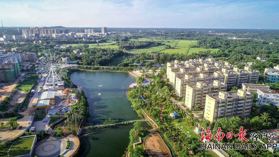 俯瞰位于文昌文城鎮的霞洞湖水生態綜合整治工程。