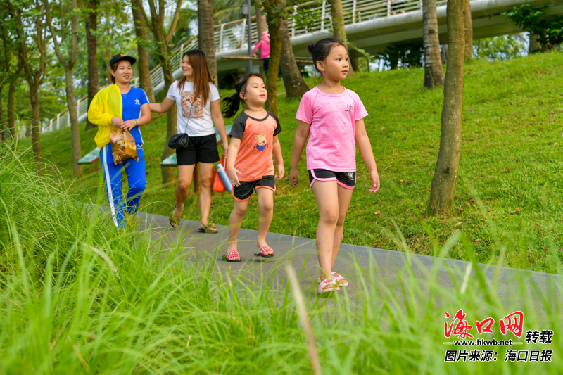 家長帶著孩子在美舍河鳳翔濕地公園感受海口好空氣。記者李天平 攝