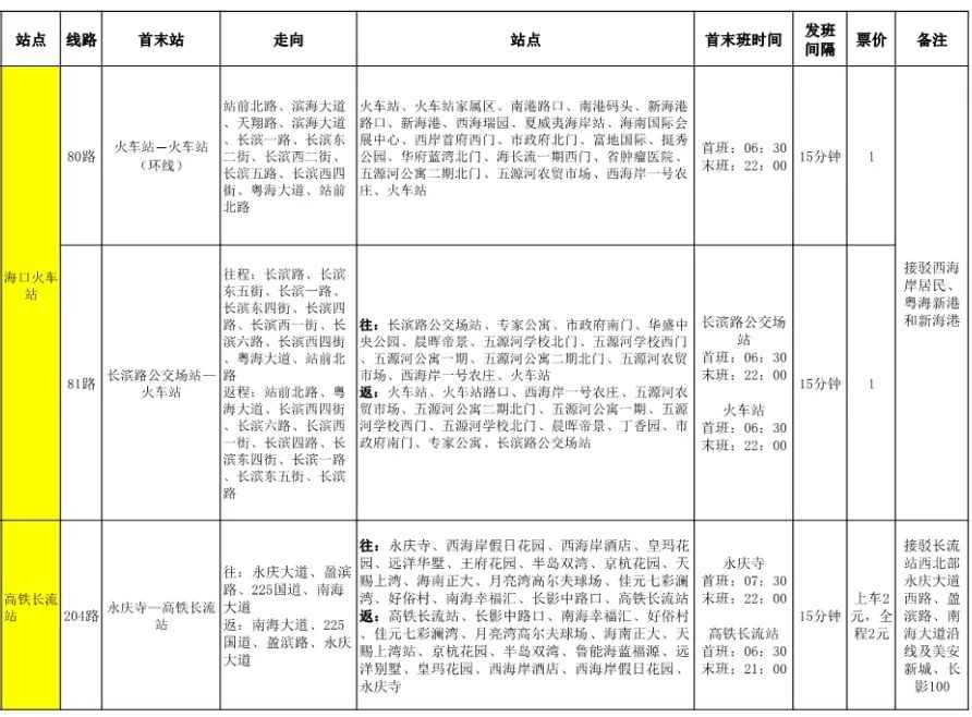 海口站至長流站票價為2元,用時10分鐘;