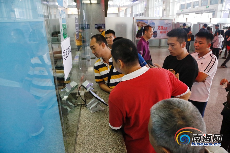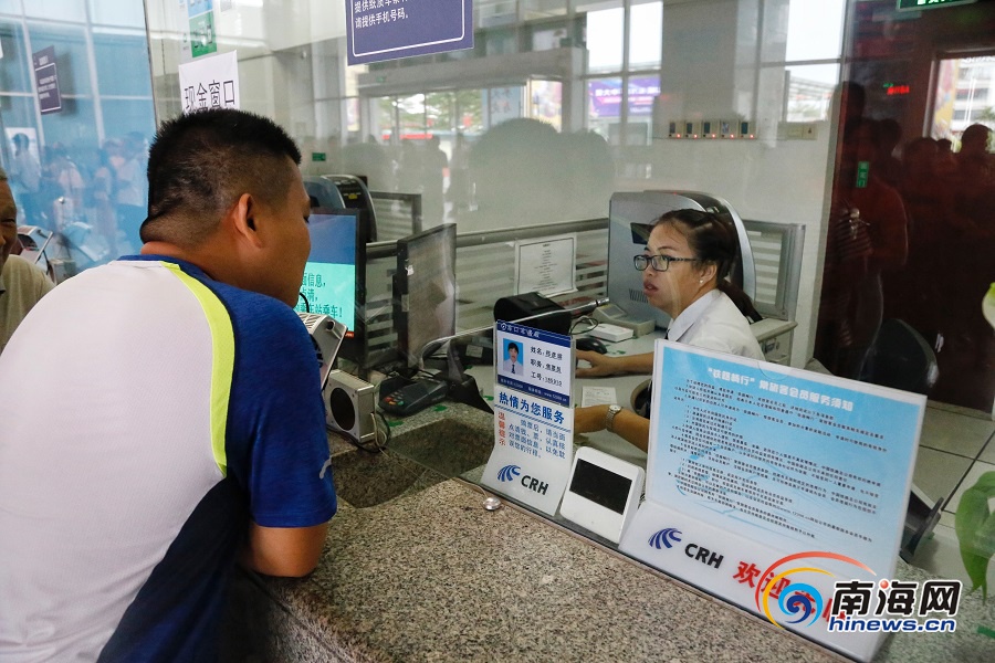 海口市郊列車正式首發運營當日,海口東站開設三個窗口,均為高鐵和市郊列車共用售票窗口。南海網記者 姚皓 攝