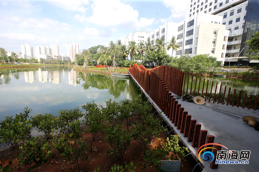 據悉,已開放的鴨尾溪濕地生態系統建設工程1號段位于??谑腥嗣襻t院和海達橋之間,設有觀景臺、親水棧道、花園式垃圾回收站、林蔭花園、康養花園、生態島、散步小徑、立體停車場。